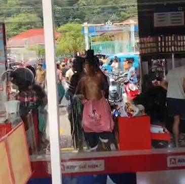 Berdasarkan rekaman video yang didapat, Sabtu (29/11) lalu, terlihat para warga dengan cara paksa mengambil makan serta barang-barang lainnya dari dalam swalayan. Aksi itu dilakukan warga dikarenakan diduga kurangnya pasokan bantuan pangan di tengah situasi bencana alam tersebut.