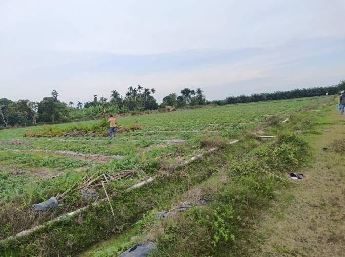 SERGAI, TOPKOTA.co – Pantauan dilokasi pada Rabu (21/1/2026), Peralihan fungsi lahan seluas sekitar 40 rante di areal afdeling ll, Kelurahan Batang Terap, Kecamatan Perbaungan, Kabupaten Serdang Bedagai (Sergai) tersebut berdekatan dengan areal pembibitan kelapa sawit tersebut. Terlihat pekerja sedang merawat tanaman semangka. Kemudian terlihat pipa panjang sengaja dipasang digunakan mengalirkan air untuk penyiraman.