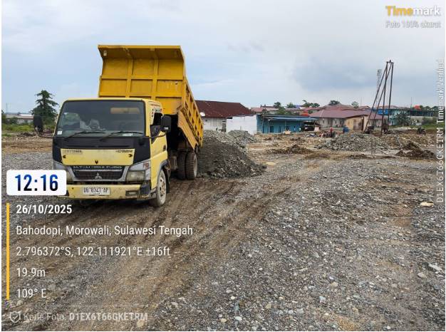 MOROWALI, TOPKOTA.co – Babinsa Koramil 1311-09/Bahodopi Sertu Marhadi terus melakukan pengawasan terhadap kegiatan penimbunan dan pemasangan pancang pembangunan Kantor Koramil 1311-09/Bahodopi yang dikerjakan oleh PT. Yoosan Surya Jaya, bertempat di Desa Bahodopi, Kecamatan Bahodopi, Kabupaten Morowali, Minggu (26/10/2025).
