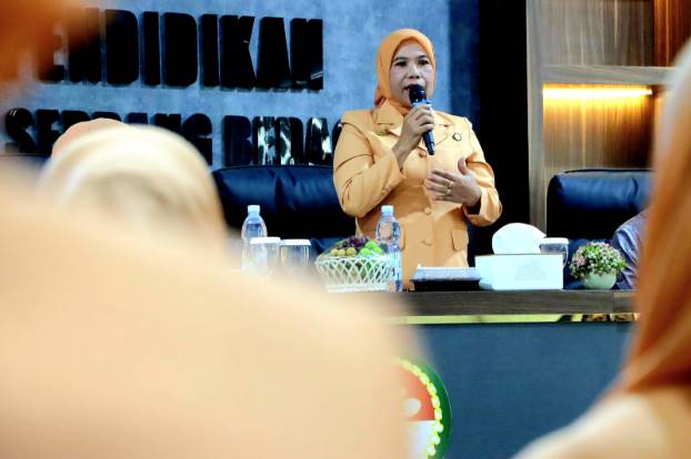 Sei Rampah, Ketua Tim Penggerak Pemberdayaan dan Kesejahteraan Keluarga (TP-PKK) Kabupaten Serdang Bedagai (Sergai) Ny. Hj. Rosmaidah Saragih Darma Wijaya, yang juga menjabat sebagai Penasehat Dharma Wanita Persatuan (DWP) Kabupaten Sergai, secara resmi membuka kegiatan Pelatihan Pengembangan Karakter bagi Organisasi Wanita di Aula Dinas Pendidikan Kabupaten Sergai, Sei Rampah, Kamis (16/10/2025).
