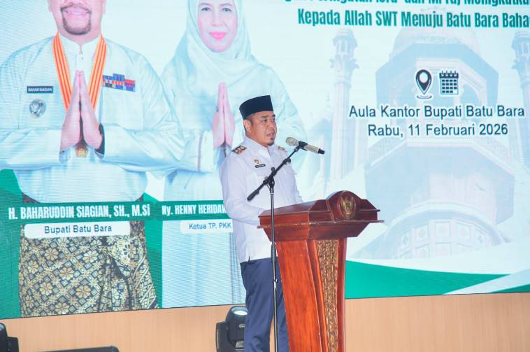 BATUBARA, TOPKOTA.co – Pemerintah Kabupaten Batu Bara menggelar Peringatan Isra Mi’raj Nabi Muhammad SAW 1447 H di Aula Kantor Bupati Batu Bara, Rabu (11/2/2026).
