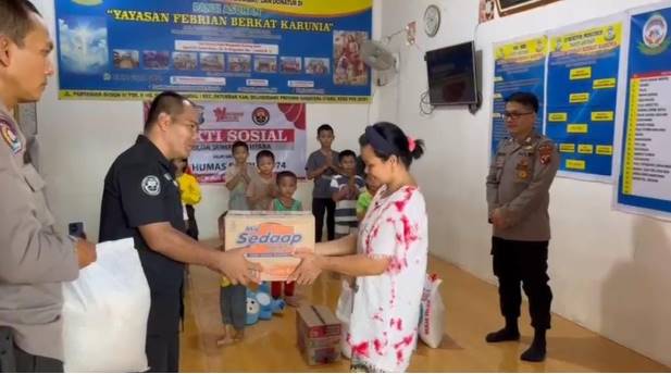Kemudian, pada pukul 13.00 WIB, rombongan melanjutkan kegiatan ke Panti Asuhan Yayasan Febrian Berkat Karunia, Marindal I. Di sana, Bidhumas Polda Sumut menyerahkan bantuan berupa beras 50 kg, minyak goreng 2 liter, gula pasir 2 kg, serta uang tunai. Bantuan diterima langsung oleh pengelola panti, Bapak Halawa, bersama anak-anak penghuni panti yang menyambut dengan penuh sukacita.