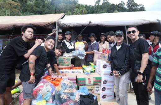 Personel Humas Satuan Brimob Polda Sumut bersama jajaran Batalyon C turun langsung mendampingi rombongan influencer dalam misi kemanusiaan pembagian sembako kepada warga terdampak di Kecamatan Batang Toru, khususnya Desa Garoga.