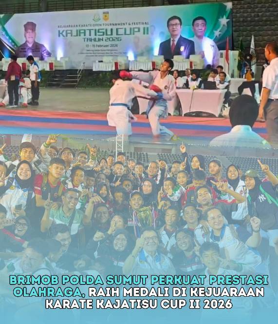 MEDAN, TOPKOTA.co – Tim karate Satuan Brimob Polda Sumatera Utara yang tergabung bersama Tim Inkanas Sumut berhasil menunjukkan performa membanggakan dalam Kejuaraan Karate Open Tournament Kajatisu Cup II 2026, yang digelar di Gedung Serbaguna Pemprov Sumatera Utara, Minggu (15/2/2026).