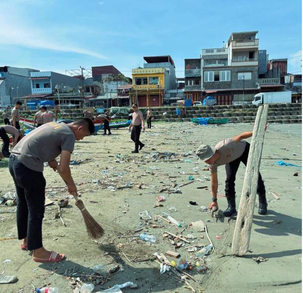 Dipimpin langsung oleh Komandan Kompi 4 Batalyon C, AKP Sanro Situngkir, personel Brimob tampak menyisir area pantai dengan penuh semangat, membersihkan sampah-sampah yang terbawa arus laut maupun yang tertinggal di sepanjang pesisir. Aksi bersih pantai ini dilakukan secara gotong royong sebagai bentuk kepedulian terhadap kebersihan lingkungan dan ekosistem pesisir.