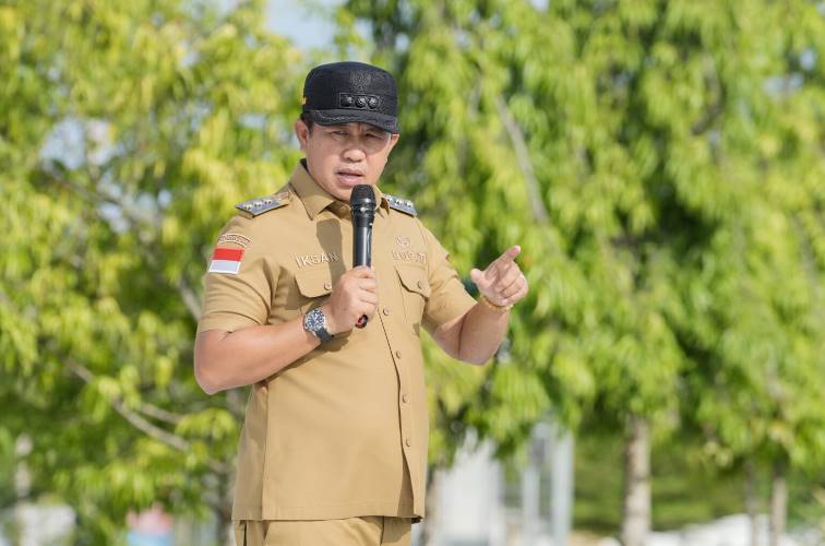 “Mana itu daerah kaya? Coba kita cubit diri kita, mana itu kata-kata daerah yang kaya,” ujarnya di hadapan peserta apel.