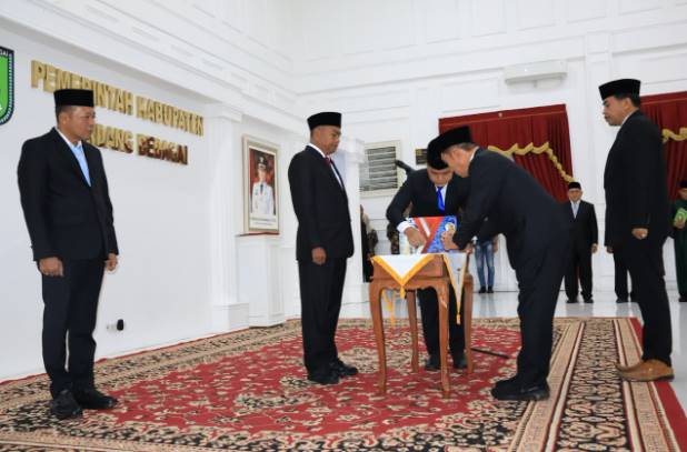 SERDANG BEDAGAI – Bupati Serdang Bedagai (Sergai), H. Darma Wijaya, secara resmi melantik Johan Sinaga sebagai Kepala Inspektorat Kabupaten Serdang Bedagai, Kamis (16/10/2025) pagi. Pelantikan berlangsung di Kantor Bupati Sergai dan dihadiri oleh Sekretaris Daerah Suwanto Nasution, para Asisten, Staf Ahli Bupati, serta sejumlah Kepala Organisasi Perangkat Daerah (OPD).