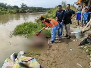 Kanit Reskrim Polsek Percut Sei Tuan Pimpin Evakuasi Mayat Pria di Bantaran Sungai Desa Percut Jumat, 3 Maret 2023