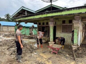 Tak Kenal Lelah, Polda Sumut Terus Bantu Bersihkan Rumah Warga Terdampak Banjir di Batang Toru Senin, 29 Desember 2025