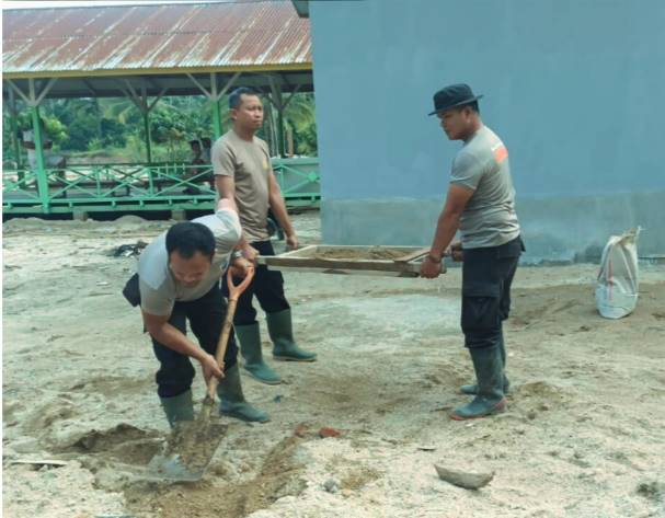 Dalam pelaksanaannya, personel Brimob bersama masyarakat melakukan pengambilan material bangunan berupa pasir dan semen untuk pemasangan lantai keramik pada rumah swadaya hunian sementara ke-11 yang tengah dibangun. Selain itu, Brimob juga membantu pemasangan pagar seng di sekolah MTs 4 Tolang Julu guna meningkatkan keamanan dan kenyamanan lingkungan belajar bagi para siswa.