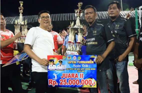 Dalam sambutannya, Bupati Darma Wijaya menyampaikan bahwa turnamen bola voli bukan hanya menjadi ajang hiburan positif bagi masyarakat, namun juga sarana untuk meningkatkan kesehatan fisik dan mental, mempererat hubungan sosial, serta mendorong perputaran ekonomi lokal.