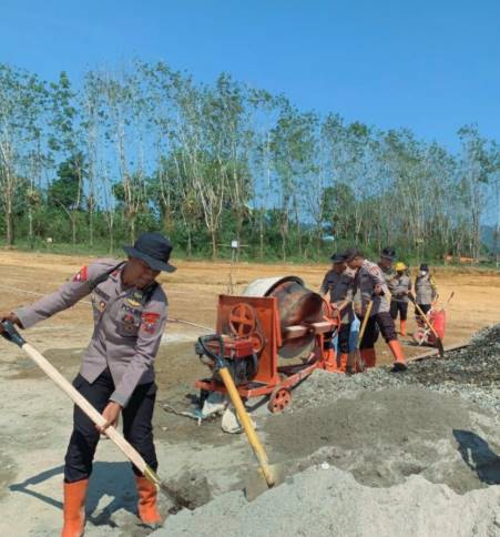 Selain pembersihan lingkungan, personel Brimob juga turut membantu pembangunan fasilitas pendukung di kawasan hunian tetap (HUNTAP), berupa pembangunan gudang penyimpanan bahan dan alat bangunan. Upaya ini diharapkan dapat mendukung kelancaran proses pembangunan hunian warga secara bertahap dan berkelanjutan.
