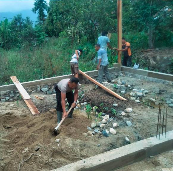 Di tengah kondisi cuaca mendung, kegiatan pembangunan tetap berjalan dengan semangat kebersamaan. Personel Brimob bergotong royong bersama warga memasang besi pondasi, melangsir material batu, serta merakit besi dan menimbun tanah sebagai bagian dari pembangunan rumah hunian sementara dan hunian tetap bagi warga terdampak banjir.