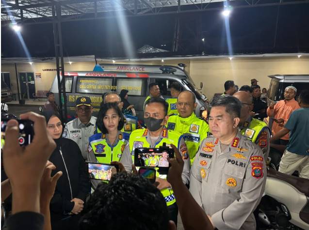 Direktur Lalu Lintas Polda Sumut, Kombes Pol. Firman Darmansyah, S.I.K., didampingi Kabid Humas Polda Sumut Kombes Pol. Ferry Walintukan, menyampaikan duka cita mendalam atas musibah yang menimpa para korban.