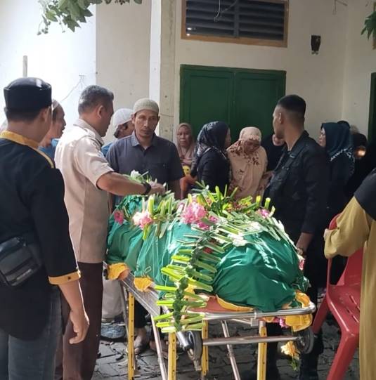 Suasana haru menyelimuti rumah duka. Istri korban Suwanda terlihat menangis histeris saat jenazah suaminya diberangkatkan menuju pemakaman.