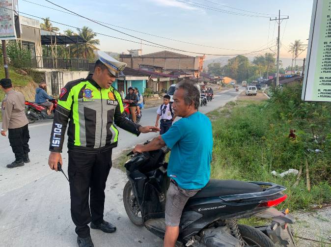 SALAK, TOPKOTA.co – Dalam Ops Keselamatan Toba 2026 Satgas Gakkum Polres Pakpak Bharat lakukan Tilang Teguran kepada masyarakat selaku pengguna jalan, Selasa 03 Februari 2026 sekitar pukul 07.00 s/d 08.30 wib di seputaran Kota Salak Kabupaten Pakpak Bharat.