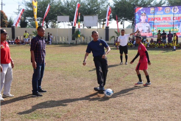 SERGAI, TOPKOTA.co – Kapolres Serdang Bedagai AKBP Oxy Yudha Pratesta SIK membuka Turnamen Sepak Bola U-12 Kapolres Serdang Bedagai Cup dalam rangka HUT Bhayangkara ke-77, di Lapangan Hijau Polres Serdang Bedagai, Selasa (20/6/2023).