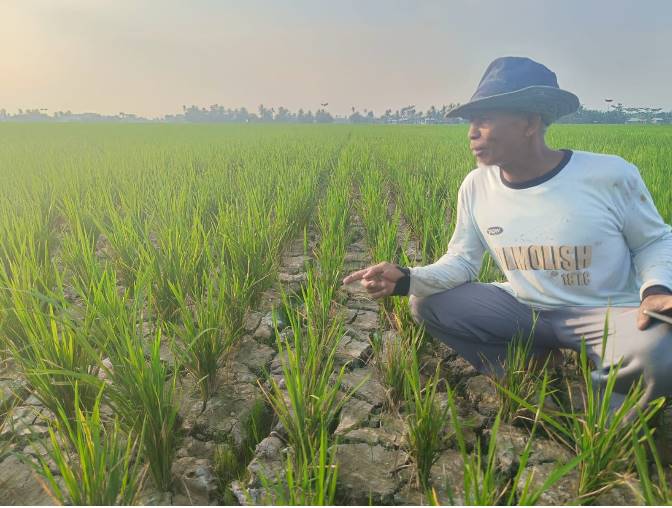 Kondisi ini dipicu tidak mengalirnya air irigasi sehingga petani kesulitan mendapatkan pasokan air untuk lahan mereka.