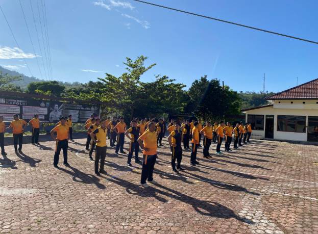 ” Setelah apel ini mari kita laksanakan kegiatan olahraga bersama dengan baik karena kita lihat bersama situasi cuaca akhir – akhir ini tidak bersahabat, hujan dan hawa dingin di Kabupaten Pakpak Bharat ini membuat keringat kita tidak keluar untuk itu mari kita berolahraga, sebentar tapi serius akan memberikan efek kesehatan yang baik kepada diri kita “, tegas Kompol Donris E Pasaribu.