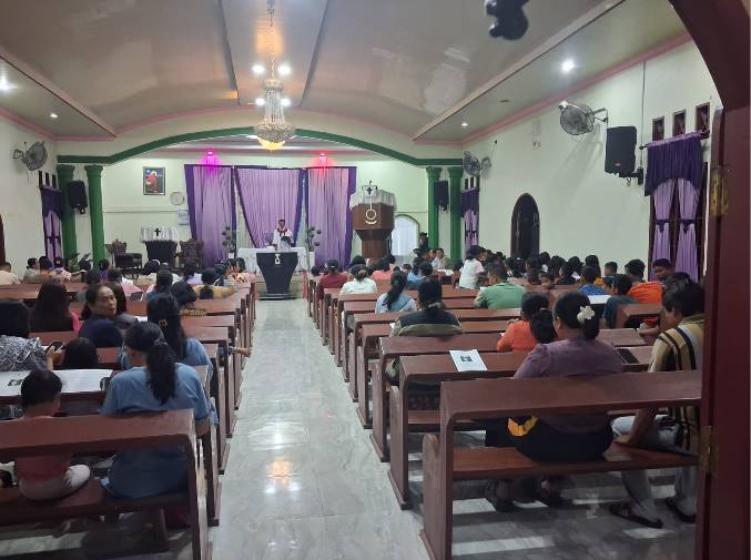 Jumlah jemaat yang hadir sekitar 80 orang, dengan pengkhotbah Pdt. NENGSI PURBA. Polisi juga melakukan pengaturan lalu lintas dan parkir, dengan 2 unit R-4 dan 30 unit R-2.