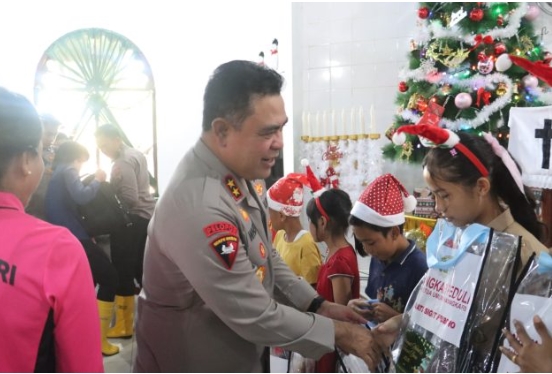 “Kami hadir bukan hanya sebagai aparat negara, tetapi sebagai saudara. Polri datang untuk berbagi rasa, memberikan semangat, dan membawa sukacita Natal kepada Bapak dan Ibu semua. Tetaplah kuat dan dekatkan diri kepada Tuhan, karena Dia tidak pernah meninggalkan kita,” tutur Kapolda dengan penuh empati.
