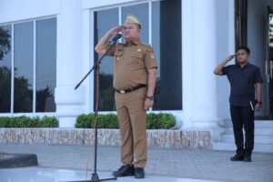 Ketua Tim Kunjungan Kerja Komisi III DPR RI H Ahmad Sahroni SE MIKOM saat tiba di Polda Sumut menerima jajar hormat dari Personel Polda Sumut.