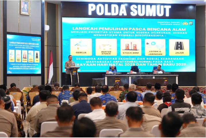 Hal tersebut disampaikan Kapolda Sumut, Irjen Pol Whisnu Hermawan Februanto, saat memimpin Rapat Koordinasi Lintas Sektoral Operasi Lilin Toba 2025 di Aula Tribrata Polda Sumut, Rabu (17/12/2025).