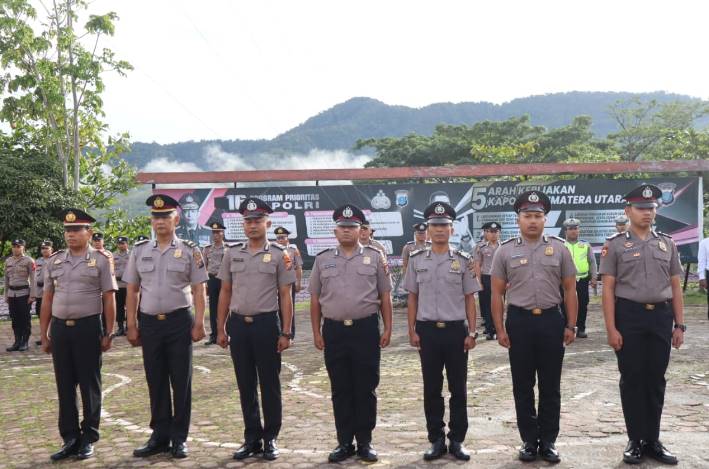 Kapolres Pakpak Bharat Bertindak selaku Inspektur Upacara yang di hadiri oleh Wakapolres Kompol Donris E. Pasaribu S.H para PJU, Kapolsek Jajaran, Ketua Bhayangkari Cabang Pakpak Bharat/Pengurus Bhayangkari dan seluruh Personil Polres Pakpak Bharat dan yang bertindak selaku Komandan Upacara Ipda Samahati Telaumbanua.