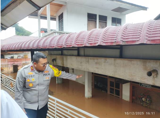 Kapolres Sibolga AKBP Eddy Inganta, S.H., S.I.K., M.H., didampingi Kabag Ops Polres Sibolga serta Kasat Intelkam Polres Sibolga IPTU Suryantoni, S.H., turun langsung ke lokasi terdampak untuk melakukan pengecekan kondisi banjir dan memastikan penanganan berjalan dengan baik.