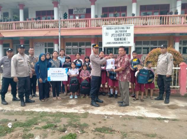 Sedangkan SDN 153028 Padang Masiang 1 memperoleh 97 tas sekolah, 97 paket buku dan alat tulis, 48 stel seragam pria, dan 49 stel seragam wanita.