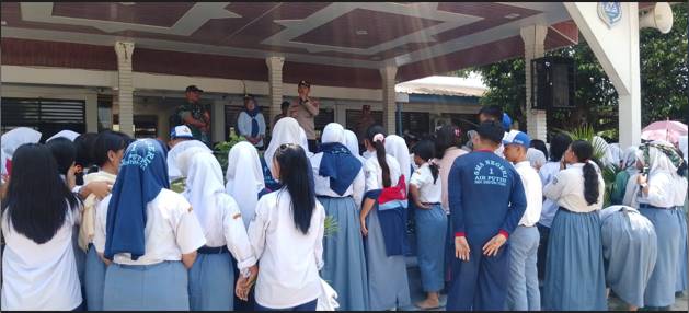 Kapolsek Indrapura memberikan arahan dan bimbingan kepada siswa/i untuk saling menghargai sesama teman, tidak melakukan perundungan, dan menerapkan tata tertib sekolah.