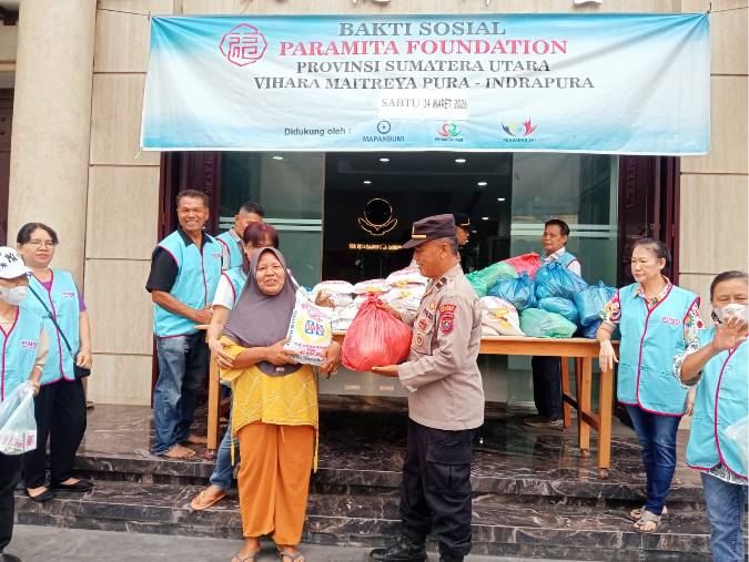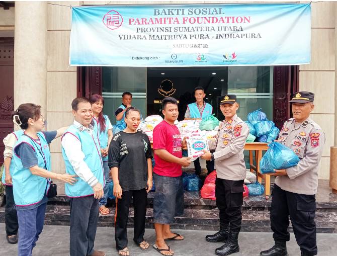 INDRAPURA, TOPKOTA.co – Kapolsek Indrapura AKP Rahmad R. Hutagaol, S.H., M.H., melaksanakan kegiatan bakti sosial bersama Paramita Foundation Vihara Maitreyapura Indrapura, Sabtu (14/3/2026).