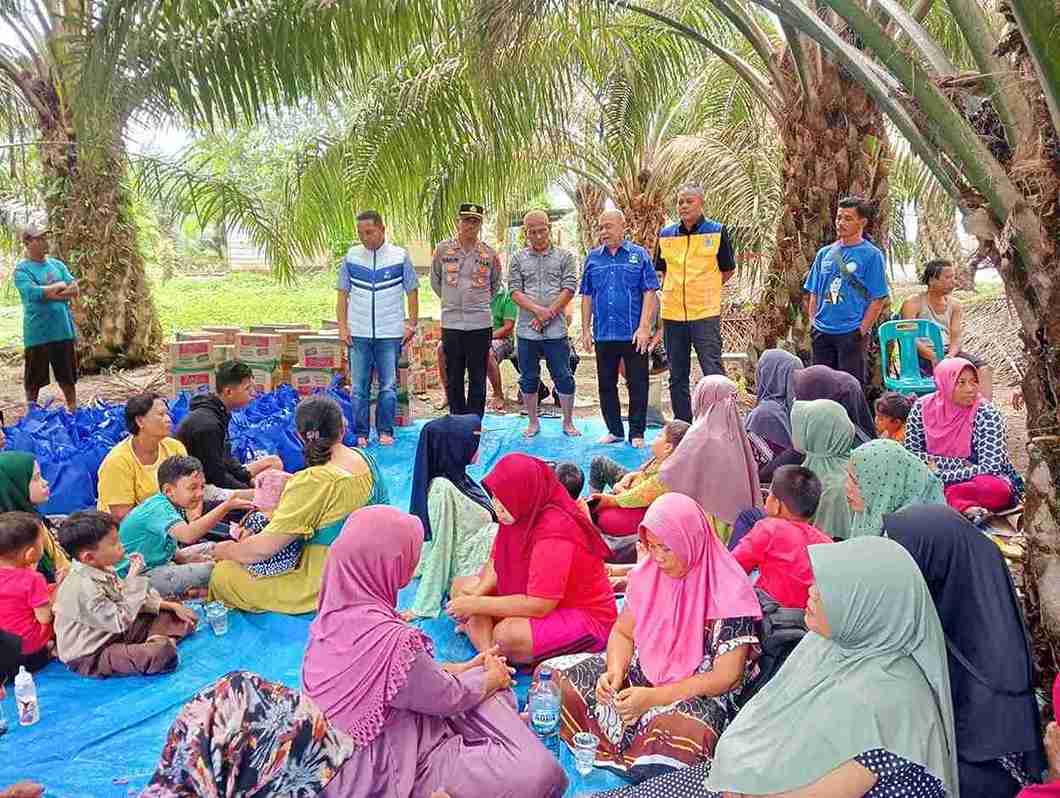 Polsek Indrapura membagikan bantuan sembako sebanyak 65 paket kepada warga Dusun IX Pulo Rotan Desa Kandangan yang terdampak banjir (65 KK).