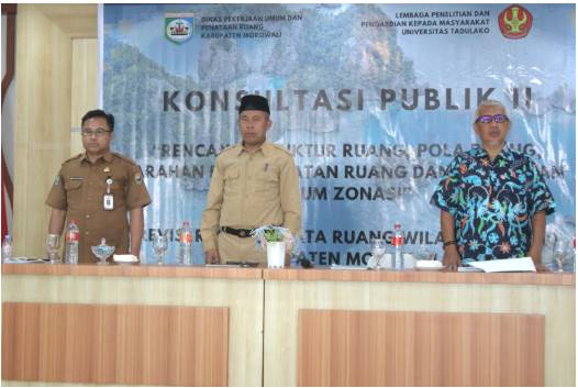 MOROWALI, TOPKOTA.co – Pemerintah Daerah Kabupaten Morowali melalui Dinas Pekerjaan Umum dan Penataan Ruang (PUPR) bekerja sama dengan Lembaga Penelitian dan Pengabdian kepada Masyarakat (LPPM) Universitas Tadulako menggelar Konsultasi Publik II Revisi Rencana Tata Ruang Wilayah (RTRW) Kabupaten Morowali. Kegiatan yang mengusung tema “Rencana Struktur Ruang, Pola Ruang, Arahan Pemanfaatan Ruang, dan Ketentuan Umum Zonasi” ini berlangsung di Hotel Metro Morowali, Desa Bente, Kecamatan Bungku Tengah, Selasa (24/11/2025).