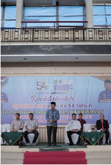 ASAHAN, TOPKOTA.co – Dalam rangka memeriahkan Hari Ulang Tahun Korps Pegawai Republik Indonesia (Korpri) ke-54, Dewan Pengurus Korpri (DPK) Kabupaten Asahan menggelar Try Out Online Akbar Sekolah Kedinasan yang diikuti ratusan siswa kelas X, XI, XII serta lulusan SLTA sederajat se-Kabupaten Asahan, (29/11/2025).