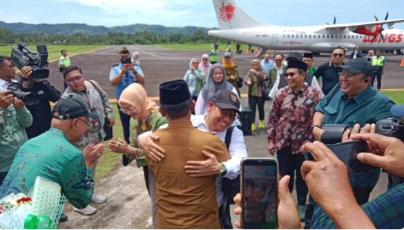 TAPTENG, TOPKOTA.co – Suasana hangat dan penuh keakraban mewarnai Bandara Dr. Ferdinand Lumbantobing, Pinangsori, saat Bupati Tapanuli Tengah, Masinton Pasaribu, bersama Ketua TP PKK Ny. Rismawaty Masinton Pasaribu, Wakil Bupati Mahmud Efendi, dan Ny. Masnoni Mahmud Efendi menyambut kedatangan Menteri Koordinator Bidang Pemberdayaan Masyarakat (Menko PMK) RI, Muhaimin Iskandar, beserta rombongan DPR RI, Selasa (21/10/2025).