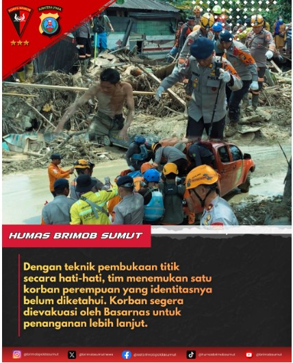 Brimob Sumut dan seluruh unsur SAR berdiri di garda terdepan melindungi, melayani, dan memastikan tak ada satu pun korban yang terabaikan. (Ayu)