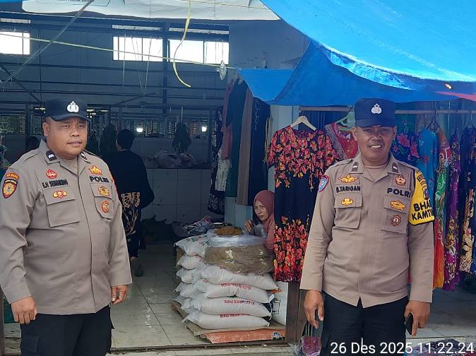 Kegiatan Rutin Yang Di Tingkatkan ( KRYD ) di pasar rakyat Onan Sukaramai berjalan dengan baik aman dan lancar, Polres Pakpak Bharat melalui Polsek Sukaramai bertekad memberikan pelayanan yang Presisi kepada masyarakat saat Perayaan hari Natal 2025 dan saat jelang Pergantian tahun. (Ayu)