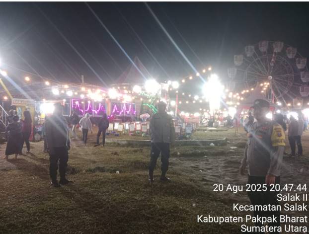 Kapolres Pakpak Bharat AKBP Pebriandi Haloho S.H., S.I.K., M.Si melalui Kasi Humas yang di sampaikan oleh Ps. Kasubsi Penmas Si Humas Aiptu Widodo mengatakan kita laksanakan Patroli dan Sambang menyasar kepada kegiatan malam hari di tengah masyarakat, seperti bank, kantor pemerintahan, cafe, grosir bahkan pasar malam yang di adakan dalam rangka menyemarakkan HUT RI Ke – 80 di kota salak tepatnya di lapangan Napasengkut juga kita atensi, mengingat masyarakat di Kabupaten Pakpak Bharat khususnya Kota Salak tak bosan – bosannya untuk mencari Hiburan dan pasar malam jadi target mereka.