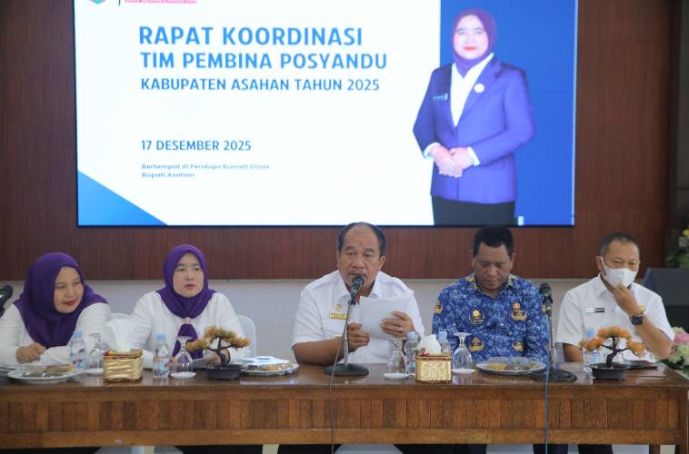 ASAHAN, TOPKOTA.co — Pemerintah Kabupaten Asahan mengonsolidasikan peran Posyandu sebagai simpul integrasi layanan sosial dasar melalui Rapat Koordinasi Tim Pembina Posyandu Kabupaten Asahan Tahun 2025 yang dibuka oleh Bupati Asahan Taufik Zainal Abidin, S.Sos., M.Si. di Pendopo Rumah Dinas Bupati Asahan, Rabu (17/12/2025).