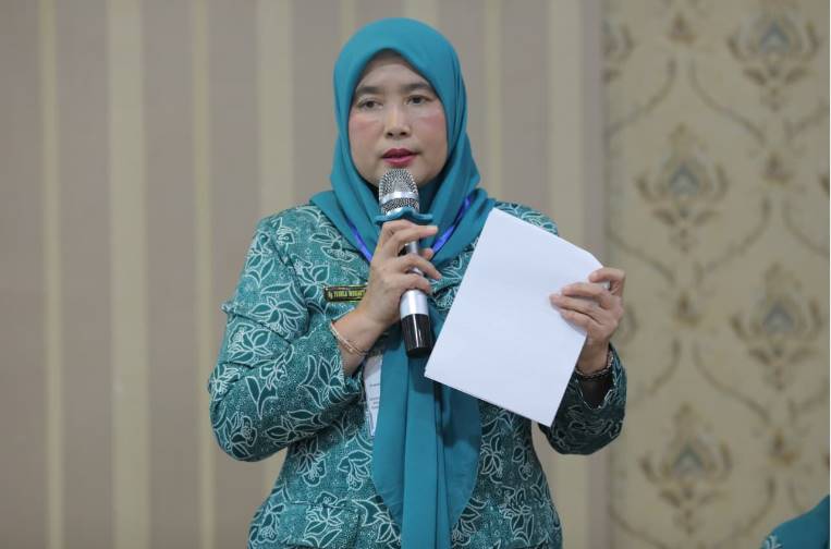 Ketua TP PKK Kabupaten Asahan Ny. Yusnila Indriati Taufik menyampaikan bahwa sosialisasi ini menjadi momentum penting untuk menyatukan langkah dan memperkuat koordinasi pengurus PKK di seluruh tingkatan.