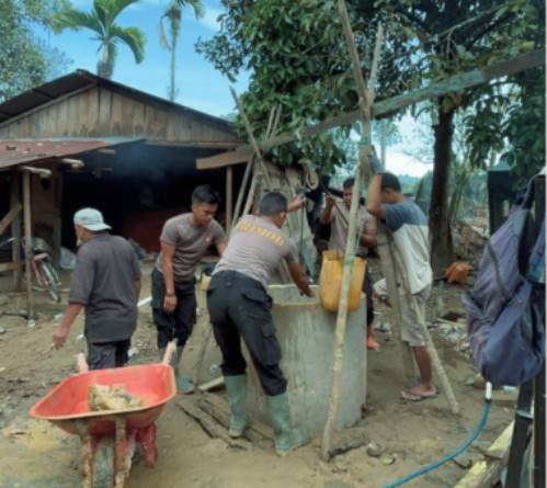 TAPSEL, TOPKOTA.co — Personel Batalyon C Satuan Brimob Polda Sumatera Utara kembali melanjutkan upaya pemulihan pascabencana banjir bandang yang melanda wilayah Kecamatan Batang Toru, Kabupaten Tapanuli Selatan, Jumat (09/01/2026). Kegiatan tersebut dilaksanakan di Desa Huta Godang dan Desa Garoga dengan fokus pada pembersihan rumah warga serta pembangunan fasilitas sanitasi dan air bersih untuk masyarakat.