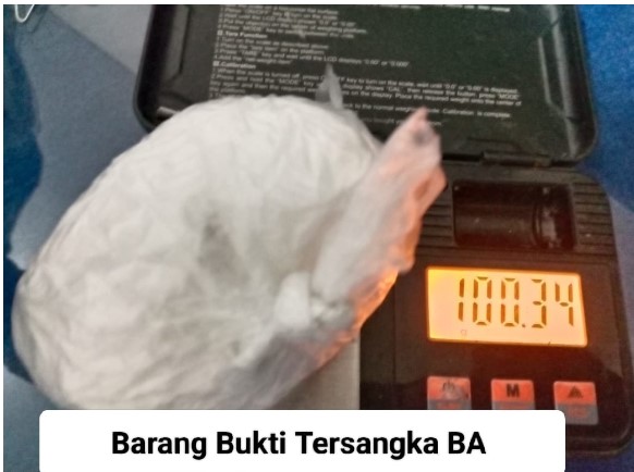 Polisi menyita barang bukti berupa 302,02 gram sabu, tas samping hitam, handphone, dan sepeda motor. BA mengaku mendapatkan sabu dari dua orang berinisial R dan Y yang sedang dalam penyelidikan.