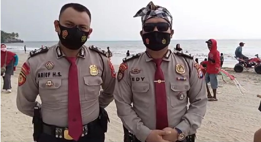 “Iya hari ini personel Ditpamobvit Polda Banten melalui Subdit Wisata melakukan patroli ke tempat-tempat wisata yang berada di kawasan Pantai Anyer. Dimana dalam patroli ini personel kita memberikan imbauan terkait protokol kesehatan kepada seluruh masyarakat yang sedang berkunjung ke pantai,” ucap Edy Sumardi.