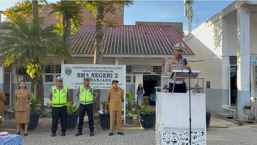KARO, TOPKOTA.co – Satuan Lalu Lintas Polres Tanah Karo melaksanakan kegiatan Police Go To School dalam rangka Operasi Kepolisian Kewilayahan Keselamatan Toba 2026. Kegiatan tersebut berlangsung pada Senin (09/02/2026) mulai pukul 07.00 WIB hingga selesai di SMA Negeri 2 Kabanjahe, Kabupaten Karo.
