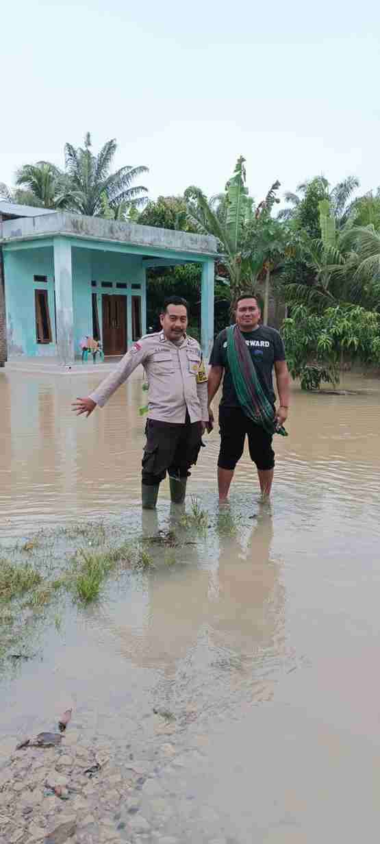 BRIPKA K.R. ARUAN (Bhabinkamtibmas) menjadi petugas pelaksana kegiatan ini dan mengecek beberapa titik lokasi banjir di sejumlah desa.