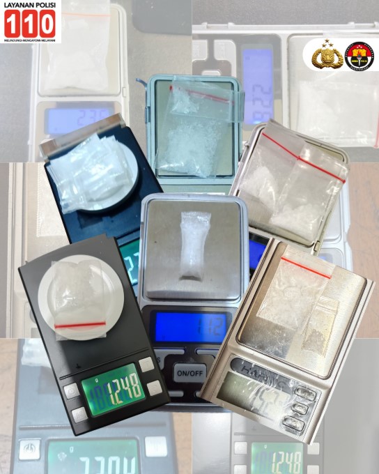 Dari kesebelas pelaku dengan sembilan TKP, ditemukan dan diamankan barang bukti berupa sabu-sabu 12,8 gram, 1 butir ekstasi, uang tunai Rp. 293.000,-, HP 5 unit serta 2 unit sepeda motor.