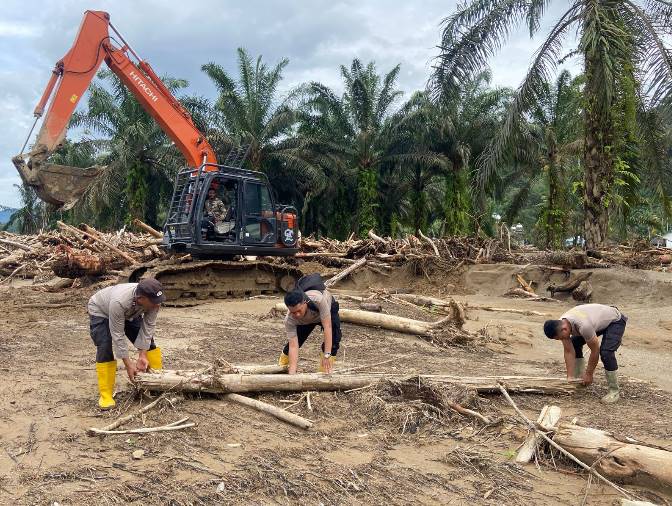 Dalam operasi kemanusiaan ini, personel Polres Labuhanbatu Selatan di bawah kepemimpinan Kabag Log AKP Mulyadi, S.H., mendirikan tenda pleton polisi, tenda pantau BPBD, serta dapur umum untuk mendukung logistik dan kebutuhan personel di lokasi bencana. Pembersihan dilakukan secara intensif menggunakan dua unit alat berat jenis beko, dibantu personel yang bekerja manual dengan cangkul, sekop, dan angkong.
