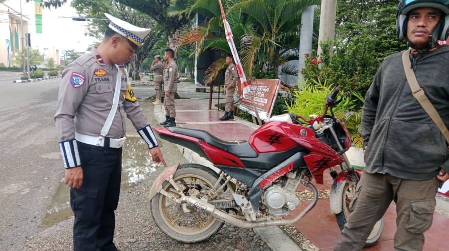 MOROWALI, TOPKOTA.co – Dalam rangka menjaga keamanan, ketertiban, dan kenyamanan masyarakat menjelang perayaan Natal 2025 dan Tahun Baru 2026 (Nataru), Polres Morowali melalui Satuan Tugas Kamseltibcarlantas melaksanakan kegiatan penindakan terhadap pengguna sepeda motor yang menggunakan knalpot tidak sesuai spesifikasi teknis atau knalpot brong