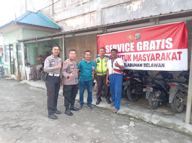 Plt. Kapolres Pelabuhan Belawan AKBP Wahyudi Rahman, SH., SIK., MM., CPHR., CBA., melalui Kapolsek Medan Labuhan Kompol Tohap Sibuea, SE., MH., menerangkan bahwa kegiatan service motor gratis ini merupakan salah satu bentuk kepedulian Polres Pelabuhan Belawan kepada masyarakat yang terdampak banjir.